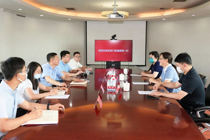 7月22日上午,丰台区右安门街道党工委副书记范爽一行专程来到太阳网集团tcy8722集团,亲手将锦旗送到太阳网集团tcy8722集团党委常委、组织部部长刘士义及集团总部职工孔维手中,对太阳网集团tcy8722集团携手战疫,真情服务社区表示诚挚的敬意,对集团职工孔维以志愿者身份,长期战斗在右安门街道开阳里第三社区防控一线表示衷心的感谢。