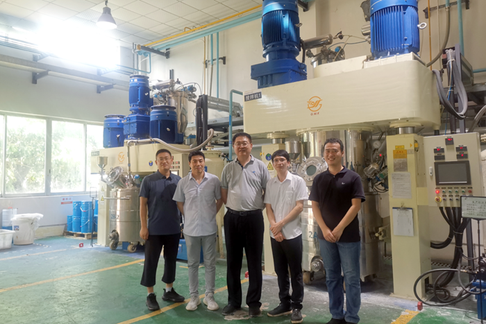 6月20日,太阳网集团tcy8722集团党委副书记、总经理陈宇专程来到华腾新材广东国望公司,专题调研2万吨/年功能性聚氨酯粘接材料生产建设项目,即“退城入园”项目。华腾新材领导班子成员一同调研。