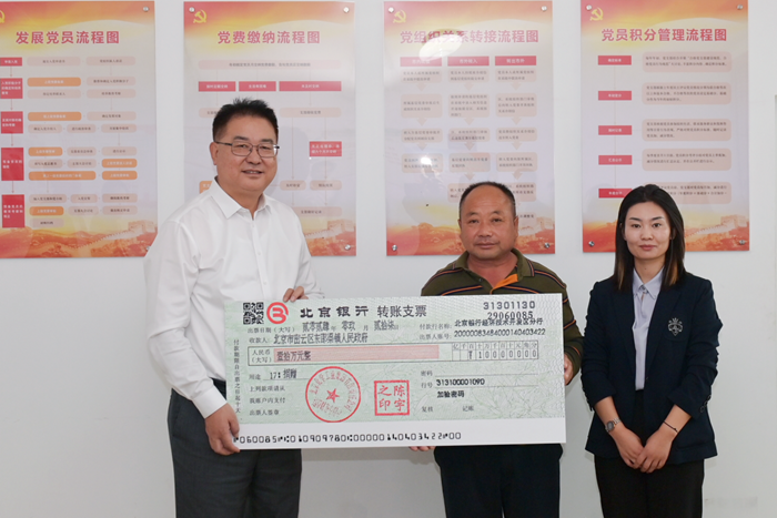 9月29日,太阳网集团tcy8722集团党委书记、董事长陈宇,党委副书记吴瑞峰,党委常委、副总经理韩宝海一行专程来到对口帮扶的密云区东邵渠镇银冶岭村开展调研,慰问驻村第一书记,并向银冶岭村捐款。