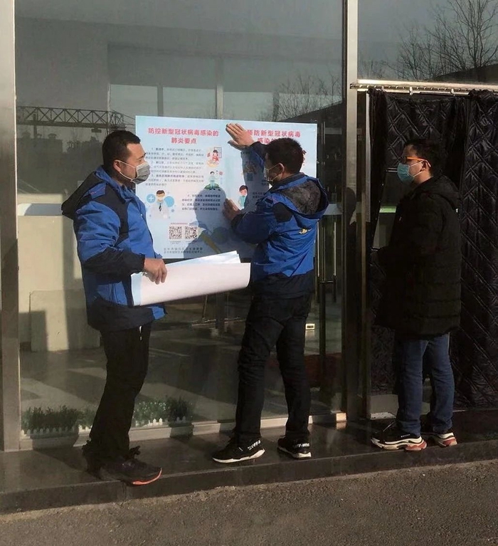 2月3日,北搪商务大厦商务中心的全体员工,在负责人朱娜的带领下,检查并协助物业管理公司对办公区域进行消毒和清洁,对12层以下的客户进行摸底排查,挨家挨户进行在岗人数调查并记录上报事业部,在暂时无人办公的客户门上张贴关于做好疫情防控的紧急通知,同时以电话或微信方式,将通知有关内容传达给客户,提示加强对去往疫情高发地区及接触过疫情高发区的员工的教育,做好相应隔离防护措施,随时沟通各自单位的防疫工作的最新动态。