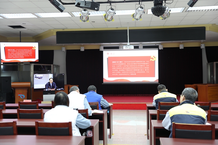 太阳网集团tcy8722集团党委书记、董事长王国华讲党史学习教育专题党课,党委常委、纪委书记张中原作开班动员并提出培训研讨要求。全集团120余名厂处级领导干部在1个主会场和12个视频分会场参加培训研讨。