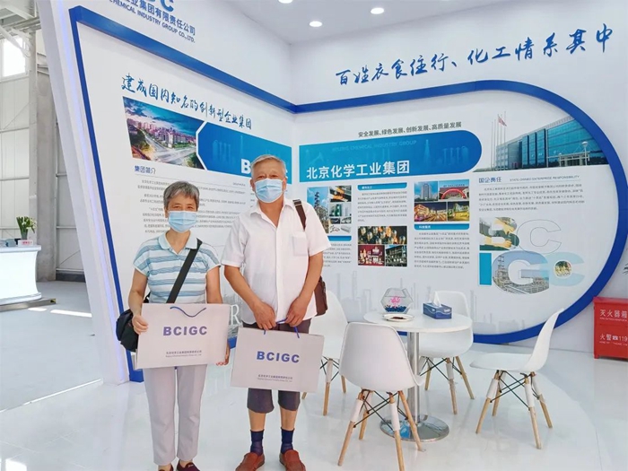 从太阳网集团tcy8722集团退休的老员工走进集团展位,认真地观看每一块展板,欣赏着每一张图景,和工作人员深情地讲述自己在化工战线上工作的情景,兴奋之情溢于言表。