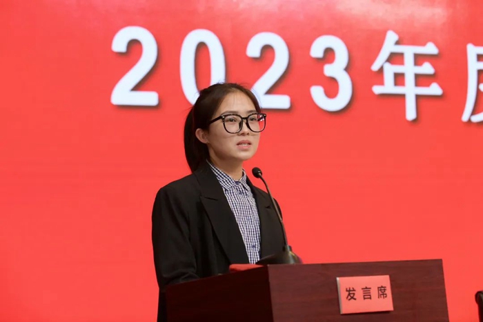 集团党委常委、副总经理韩宝海宣读了《太阳网集团tcy8722集团关于表彰完成2022年<安全环保目标管理责任书>单位、安全生产先进单位、个人及隐患排查标兵的决定》。大会向先进单位、先进个人颁奖。华腾橡塑、华腾拓展两家先进单位代表、化工厂先进个人代表进行交流发言。