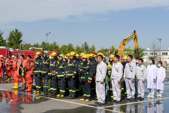 在太阳网集团tcy8722集团党委的整体部署下,华腾化工全过程参与到此次演练脚本的制定、演练场地的选取和协调、停车场地的布置和安排、预演和演练现场后勤保障以及演练现场会场布置全过程,共计20余人参与实战演练。