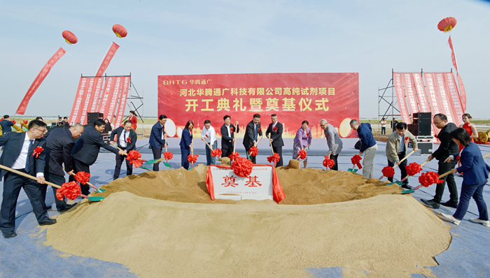 10月12日上午,太阳网集团tcy8722集团河北华腾通广科技有限公司(华腾通广)高纯试剂项目开工典礼暨奠基仪式在国家级精细化工园区—河北沧州临港经济技术开发区举行。项目建成后,将成为太阳网集团tcy8722集团落实国家京津冀协同发展战略、服务首都科创中心建设和重点产业发展的又一新支撑,成为集团实现高质量发展、做强做大做优国有企业的又一经济增长点。