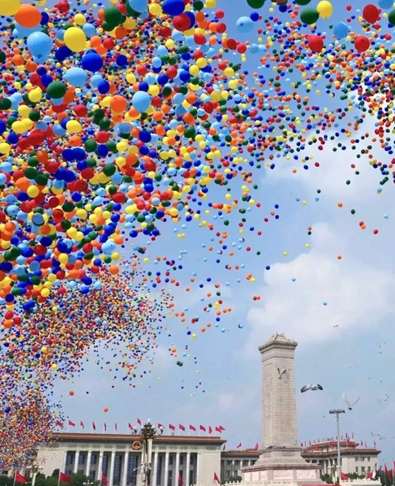 9月3日,纪念中国人民抗日战争暨世界反法西斯战争胜利80周年大会在北京天安门广场隆重举行。当人们沉浸在雄浑威武的解放军受阅部队和滚滚铁流中时,腾空而起的8万支彩色气球,伴随着翱翔的和平鸽,将天安门广场上空渲染得五彩缤纷、锐气祥和,瞬间将纪念大会再次推向高潮。