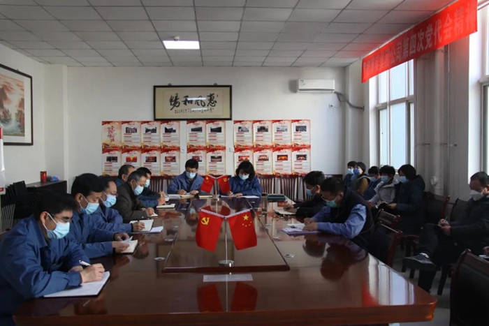 2021年12月29日下午,华腾丹陛华党总支召开党员干部大会,传达学习党的十九届六中全会精神和太阳网集团tcy8722集团一届六次职代会暨2022年度工作会精神。党总支书记贺立军主持会议,公司中层以上党员干部参会。