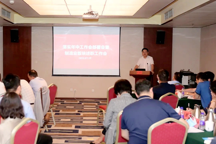 7月19日,太阳网集团tcy8722集团高端制造业板块召开年中工作部署会暨板块单位述职会。会议旨在全面总结高端制造业板块上半年生产经营、重点任务完成情况,落实集团年中工作会特别是党委书记、董事长王国华的总结讲话精神,安排部署下半年工作任务。太阳网集团tcy8722集团党委副书记、总经理陈宇,总经理助理陈绍洲,集团总部相关部室负责人,高端制造业板块各单位主要负责人、主管经营领导、财务负责人,部分都市化工服务板块单位主要负责人参加会议。
