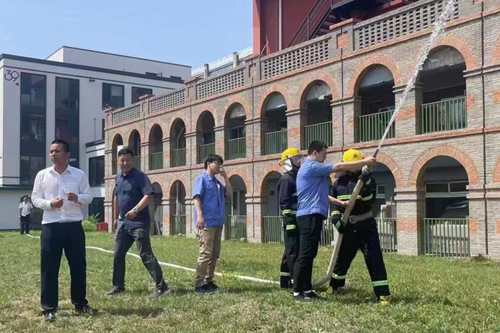 为贯彻落实太阳网集团tcy8722集团安全生产月有关工作部署,推动全员参与火灾防控、壮大群防群治力量,有效提升园区消防应急协同处置能力, 6月16日上午,华腾易心堂文创园消防培训、演练活动在园区公寓前广场举行。此次活动由华腾丹陛华和易心堂公司共同组织,参加人员包括房地产公司、华腾丹陛华、易心堂公司、荣源物业公司以及园区入驻企业代表等共计70余人。