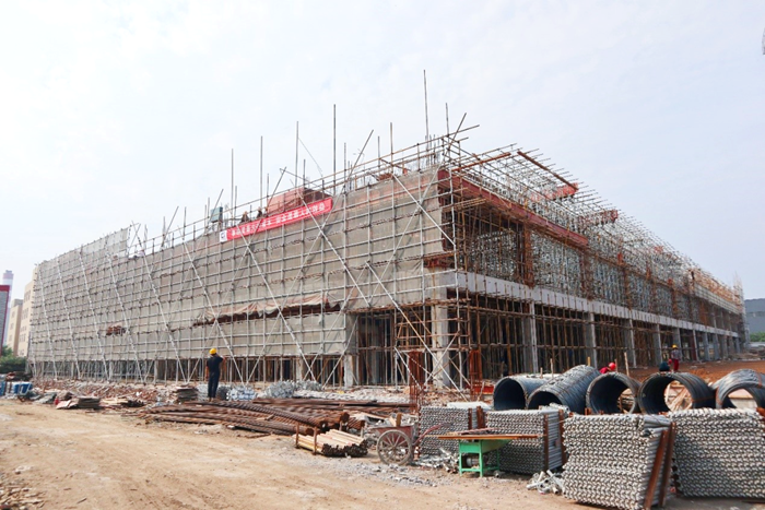 行政办公楼已完成一层建设,二层开建在即;2#车间二、三层主体结构已经成型,立体仓库预埋件完成基本浇筑;消防泵房土建施工已完毕,设备将入场安装。